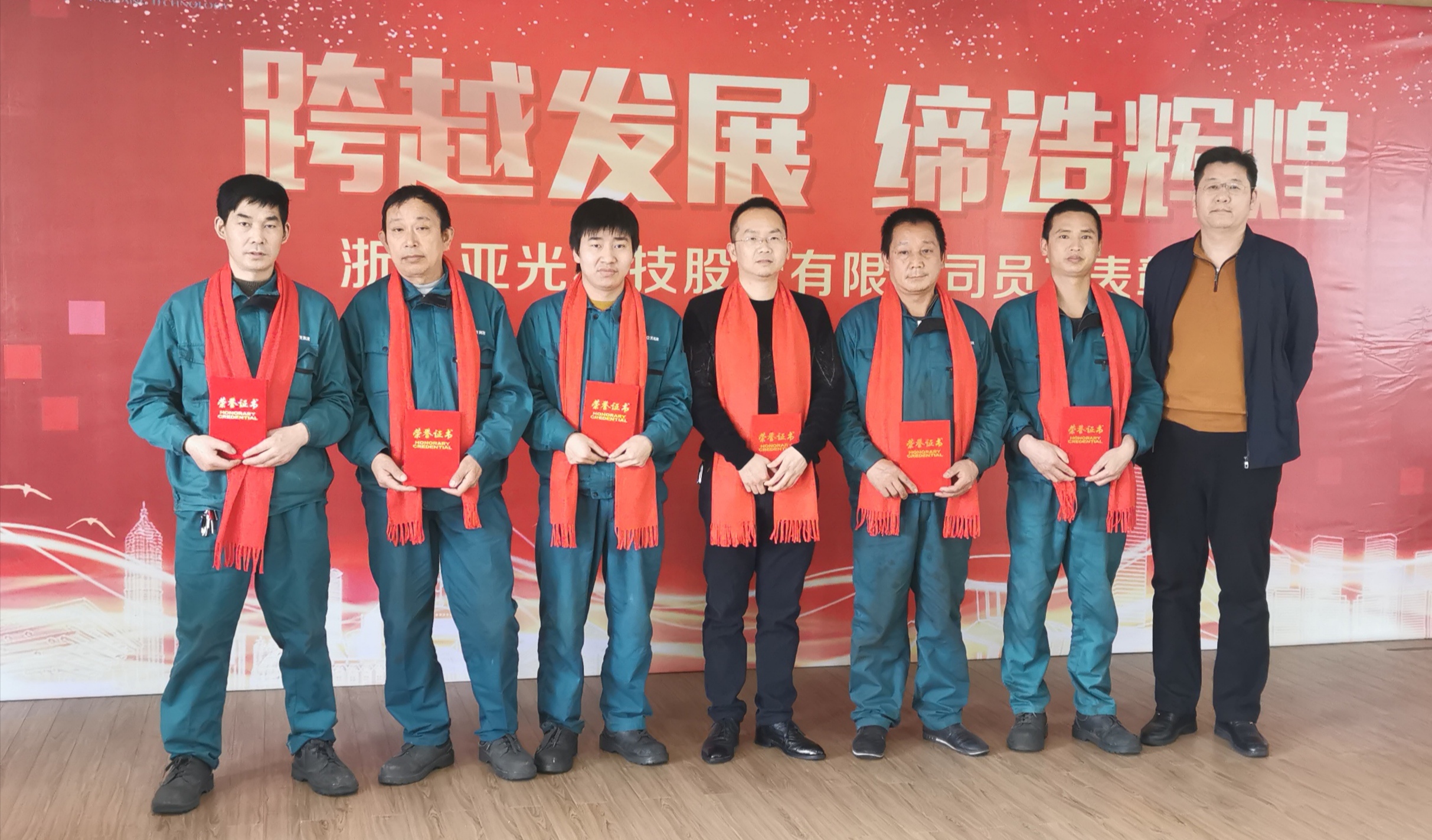 員工是企業(yè)的根基,優(yōu)秀的員工是企業(yè)制勝的法寶。正是他們不懈的努力和無私奉獻換來了亞光公司的不斷進步。表彰大會首先進行了頒獎儀式,由主持人宣讀了表彰名單,相繼頒出了十年功勛員工、焊工技能大賽優(yōu)勝員工、優(yōu)秀員工,共計獲獎人數(shù)44人。公司高層領(lǐng)導分別為各獲獎者頒發(fā)了榮譽證書、獎杯和獎金,對他們?nèi)〉玫某煽兘o予了充分的肯定和高度的贊譽。